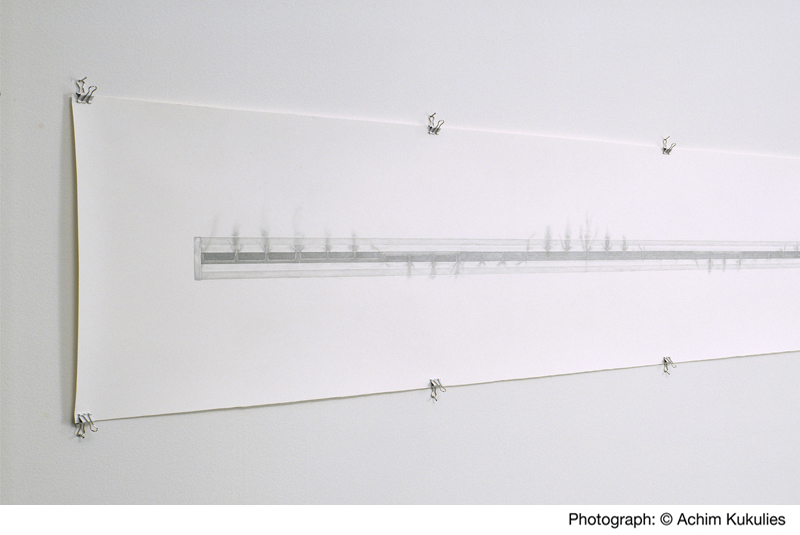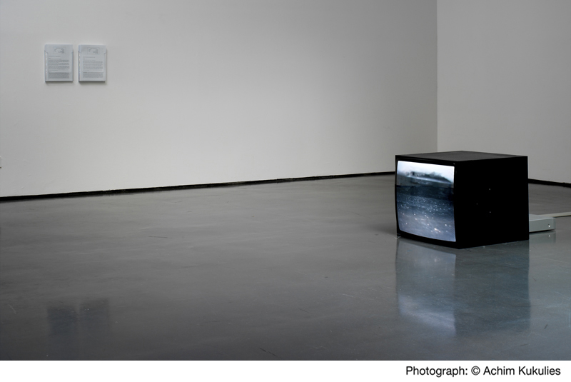 The 4-part work “Commissioned Works” consists of a drawing, a floor work, a video and a text