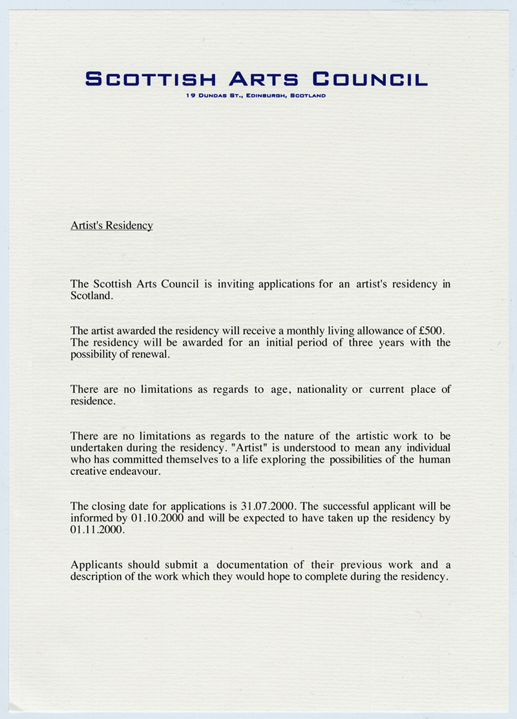 Application for an Artist's Residency in Scotland