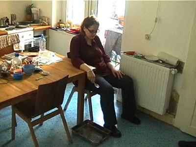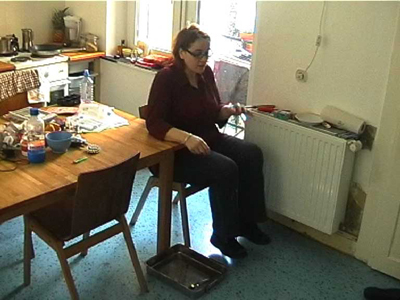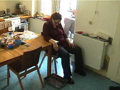 The video shows me falling asleep in a chair. In my hand I am holding a spoon. On the floor below is a metal baking tray. When I finally fall asleep, I drop the spoon. The sound of it hitting the baking tray wakes me. It is said that Oscar Wilde used to use this method to have a cat-nap.