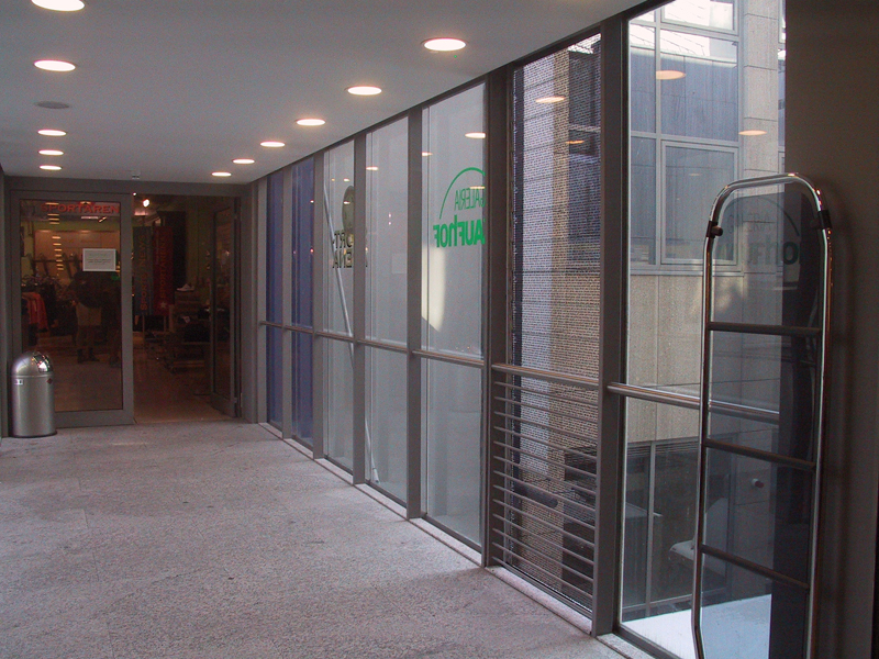Worry was written with marker pen directly onto the louvre windows in a glass bridge joining two buildings of a department store.